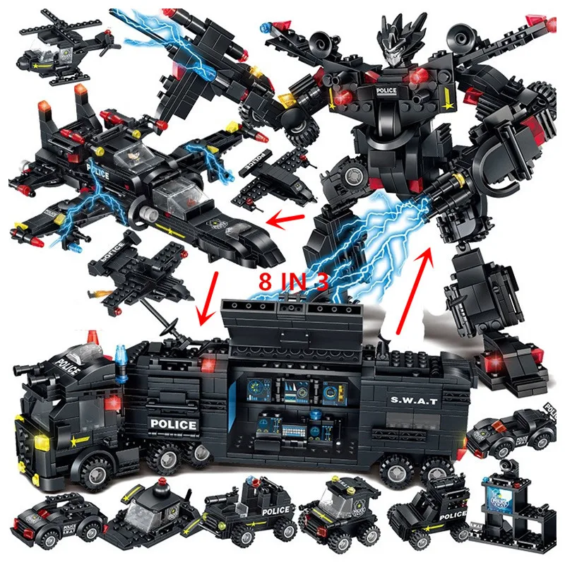 Best 700Pcs City Police Command Car Robot Toy Building Blocks Sets SWAT Team Truck DIY Creator Bricks Educational Toys For Children and You will save 50% or US $21.65 today